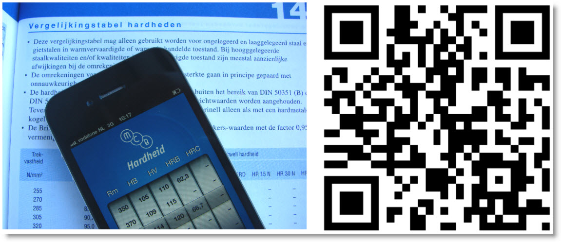Het omrekenen van de hardheidswaarden van metaal kan vanaf nu handig en snel via smartphone of tablet. MCB introduceert met deze app een innovatieve tool waarin de waarden van Rockwell, Brinell, Vickers en de treksterkte handig naast elkaar staan. Ga met je smartphone of tablet naar apps.mcb.nl/hardheid om de app rechtstreeks te downloaden.