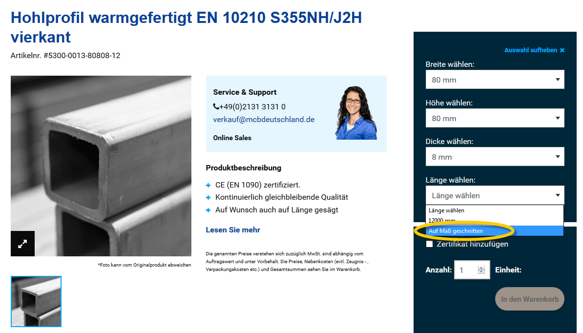 Bei MCB möchten wir Sie als Kunden so gut es geht unterstützen und entlasten. Aus diesem Grund können Sie nun auch über unser Webportal die Produkte direkt aus Vorrat bestellen. Ein großer Teil von unserem Sortiment kann auch auf Maß geliefert werden – welche Produkte das sind, sehen Sie in der Produktumschreibung.